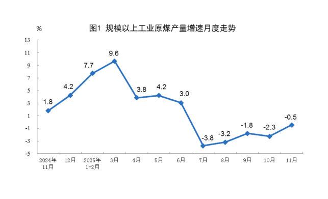 - 2025-12-17国家统计局:11月份原煤生产保持